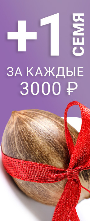• Бонусные семена в каждом заказе. Довольны клиенты – довольны и мы. Именно поэтому в каждую посылку мы кладем +1 бонусное семя и дополнительные семена за каждые 3000 рублей в чеке заказа. Помимо этого, в магазине работает гибкая система скидок, которая позволяет покупать больше, а платить меньше. А еще на сайте есть специальный раздел с акционными товарами, где можно приобрести семена марихуаны по самой выгодной цене.