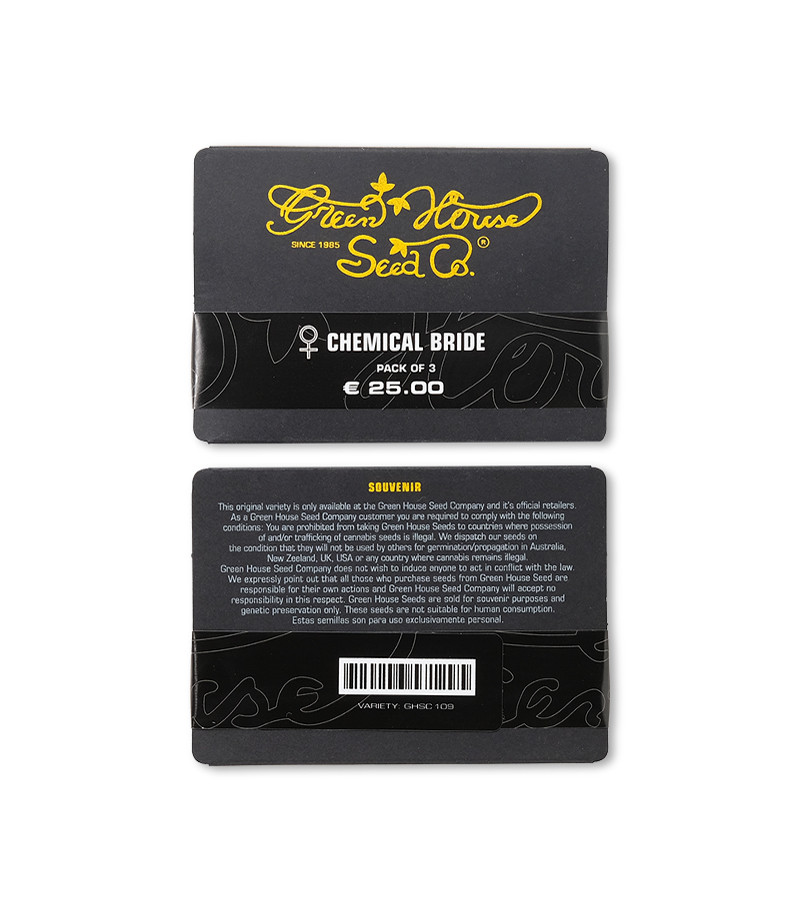Семена конопли Chemical Bride от Green House Seeds подходят для выращивания в индоре и ауте. Семки вырастают в крупные растения, которые приносят гроверам солидный урожай в индоре. Эффект сочетает в себе седативный стоун, который постепенно перетекает в приятную эйфорию.