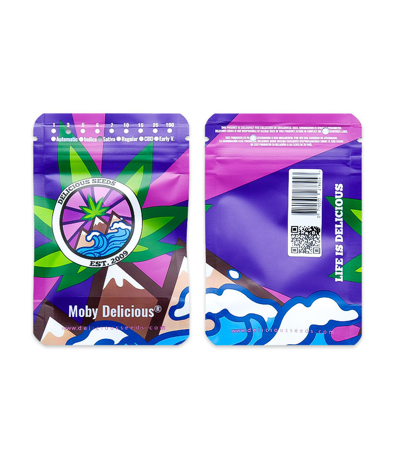 Сорт конопли Moby Delicious – это быстрый сативный гибрид, с которым српавится даже новичок гроверского дела. Он может похвастаться хорошей урожайностью до 1200 г/куст, уникальной вкусоароматической палитрой и высоким уровнем содержания ТГК 26 %. Соцветия дарят мощный воодушевляющий high-эффект.