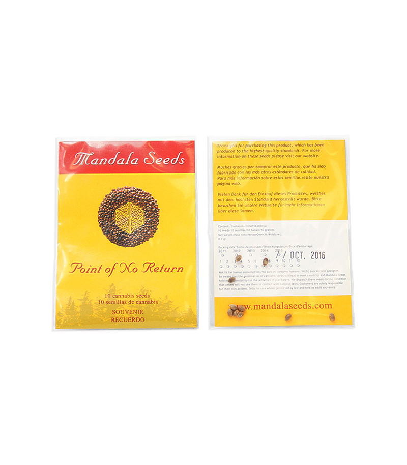 Растения сорта Point of No Return выглядят кустистыми и имеют небольшой рост. Всю свою энергетику эти растения отдают на рост и развитие соцветий, кусты буквально усыпаны ими. При использовании качественной почвосмеси после четырех недель вегетации под лампами 400Вт HPS на квадратный метр, можно ожидать роста в 70-125 см. Урожайность составляет 350-400 грамм с квадратного метра и до 1 кг с растения на открытом воздухе.