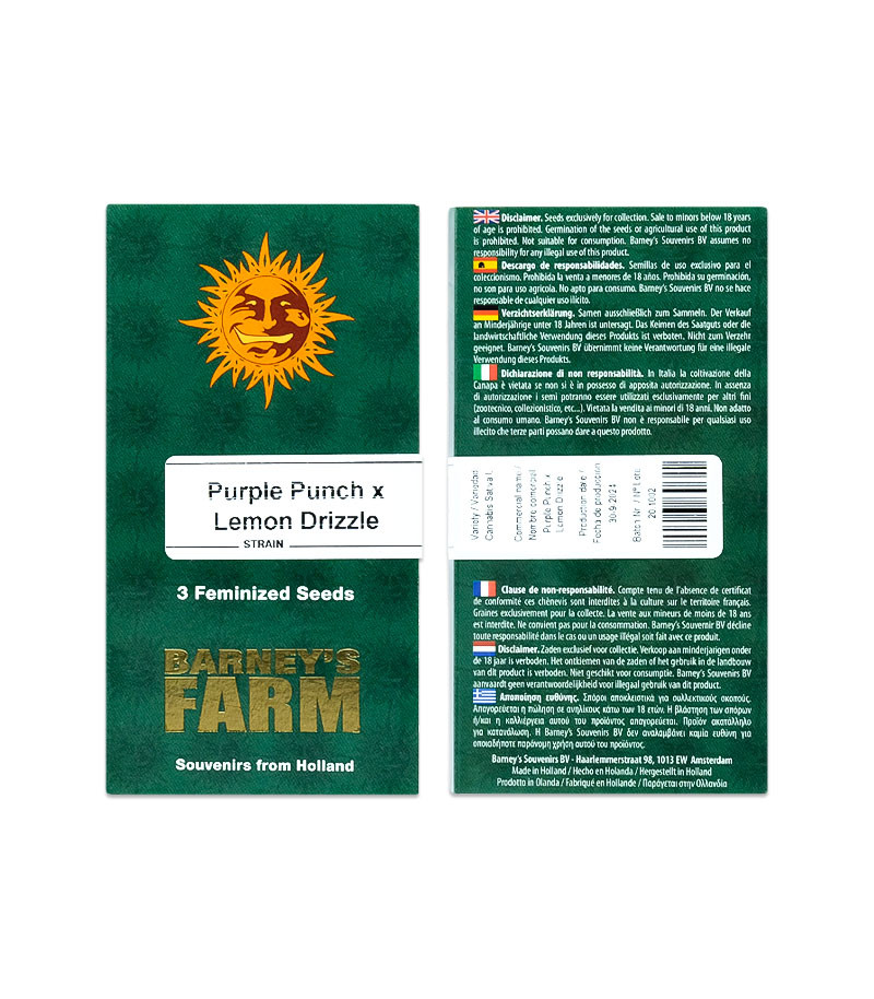 Каннабис Purple Punch х Lemon Drizzle, созданный мастерами селекции из Barney’s Farm, – это настоящий ботанический шедевр. Такое растение не оставит равнодушными даже самых взыскательных ценителей редкой генетики, и на то есть сразу несколько причин. Во-первых, растить такие кусты предельно просто. Во-вторых, выглядят растения неимоверно красиво. Ну и, конечно же, особую роль играет вкусовая и ароматическая палитра, переносящая пользователя в состояние глубочайшего экстаза на долгие часы.