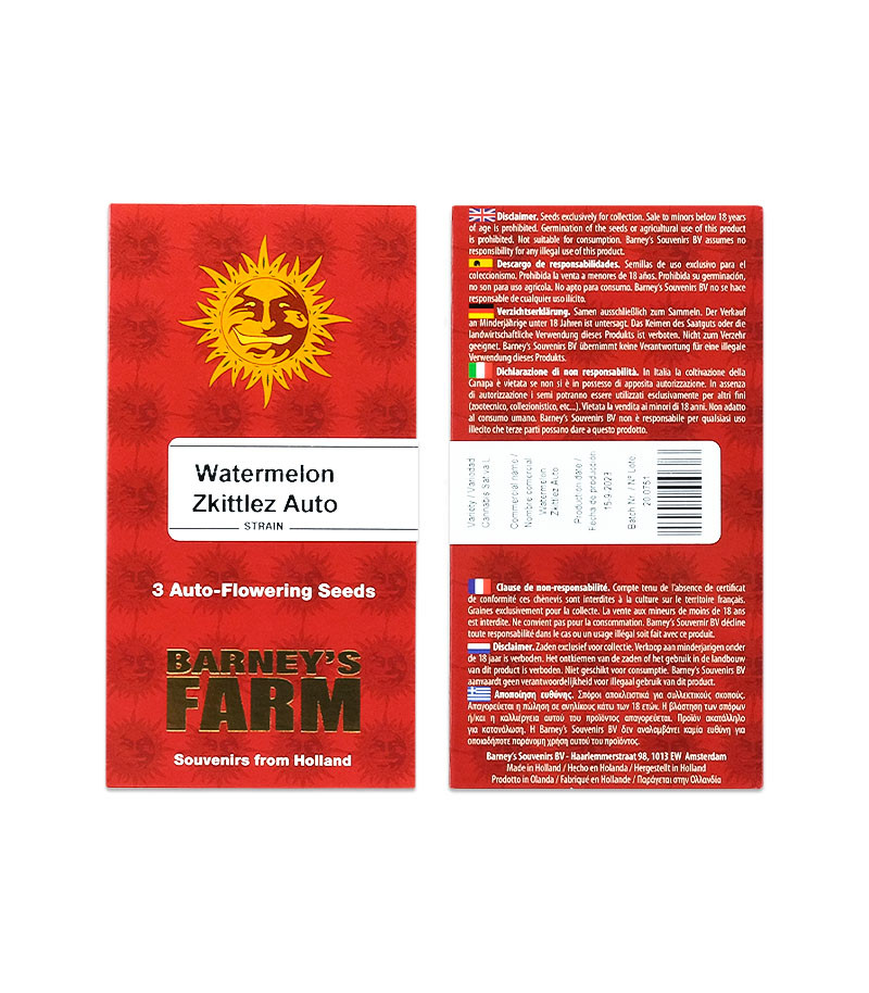 Сорт конопли Watermelon Zkittlez Auto сочетает в себе выносливость, стабильность, щедрую урожайность, приятный вкус и сбалансированный эффект. 26% ТГК одновременно расслабляют тело и настраивают мысли на позитив. Отдельным плюсом является высокая скорость созревания.